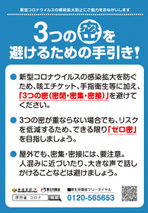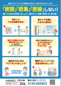 10月23日、国の新型コロナウイルス感染症対策分科会より、『感染リスクが高まる「5つの場面」』の提言がありました。
