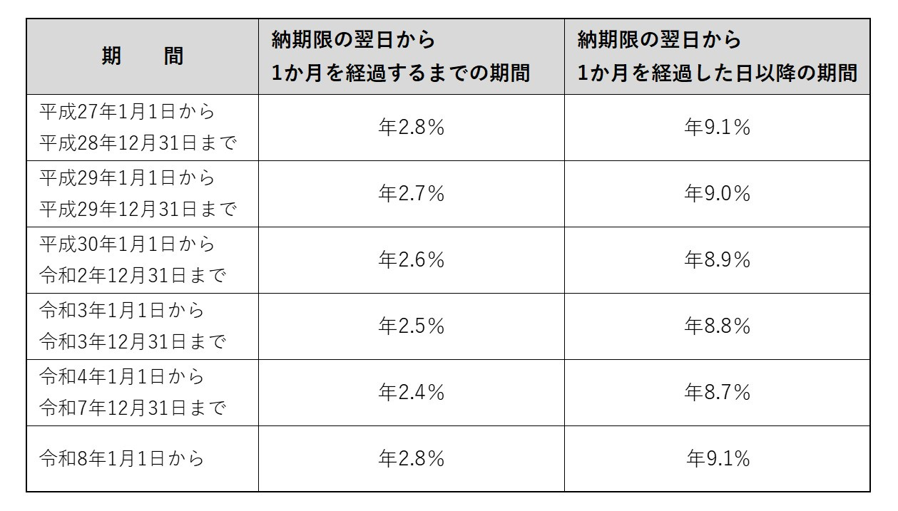 延滞金は次の計算式により算出します。(納期限が令和8年1月1日以降の場合)