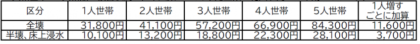 この度の災害により、住家が半壊以上及び床上浸水等の被害を受け、川北町内で在宅避難等されている方へ生活必需品などを給与します。