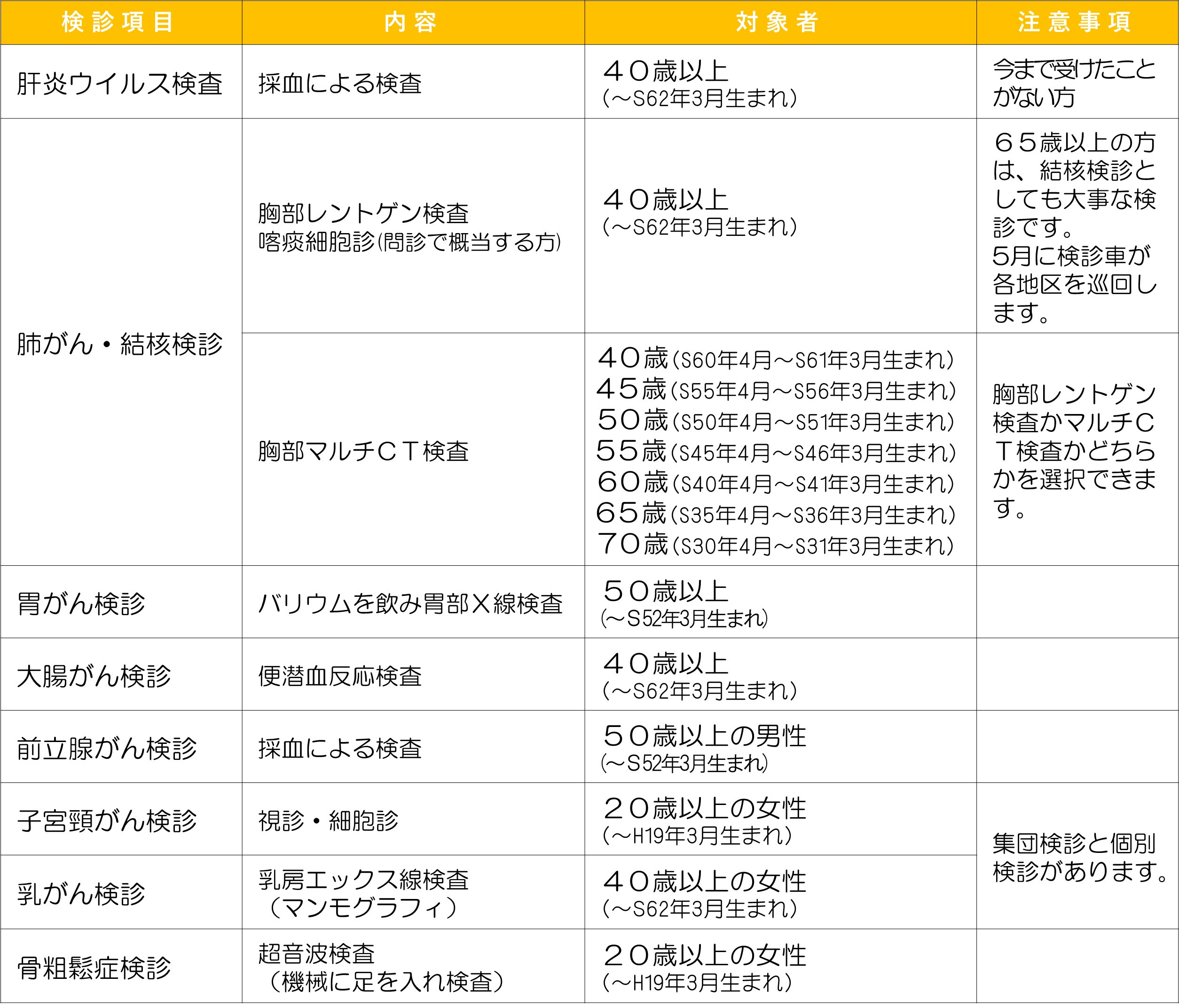 子宮頸がん検診、乳がん検診は医療機関で受ける個別検診もあります。